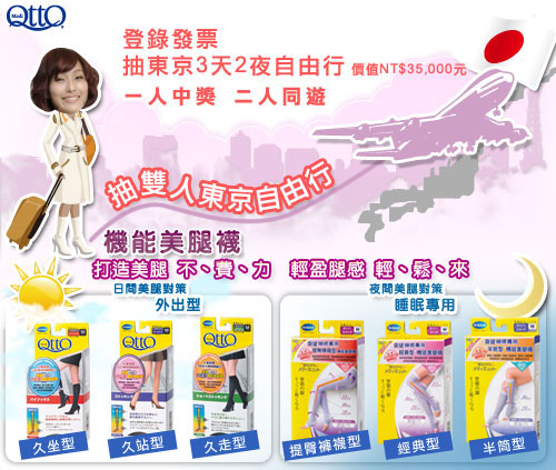 爽健 QttO機能美腿襪,送東京三天二夜自由行一人中獎,二人同遊!
