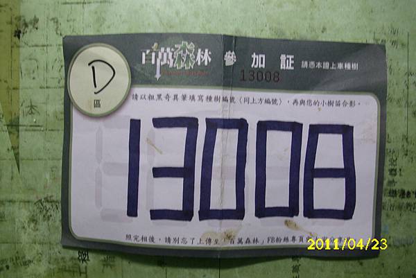 2011-04-23我參加「百萬森林」種樹愛地球活動。