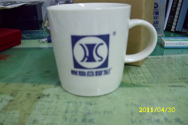 (上圖,南星的馬克杯。上面有南星的logo商標,下面印有「樹脂益膠泥」。)