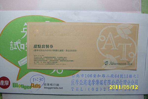 下午茶免費體驗券,這張券是我在BloggerAds臉書粉絲團參加