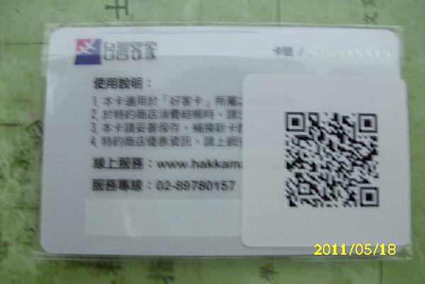 (上圖,「好客卡」反面圖。反面的好客卡有QR條碼,看起來很不賴。)