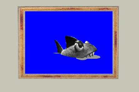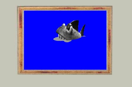 (上圖,圖二十五,FISH魚水缸動畫。)(上圖,圖二十八,鯊魚畫框動畫。)