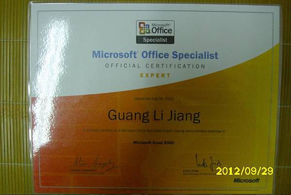 網路文章/版主:廣利部落格:http://mikejohn.pixnet.net/blog美國微軟Excel 2000國際認證。