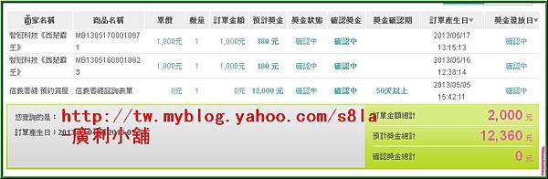 (2013-05-17)我的「通路王」五月份,入單收益。