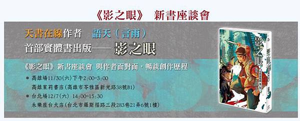 《影之眼》,新書座談會,天書在線作者─語天,首部實體書出版。