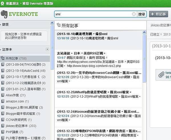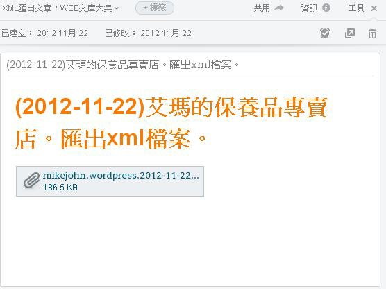 3.版主是到之前evernote裡面,找儲存的wordpress匯出xml