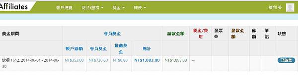 2014-07-21:我在Affiliates二○一四年六月份的第一次請款。