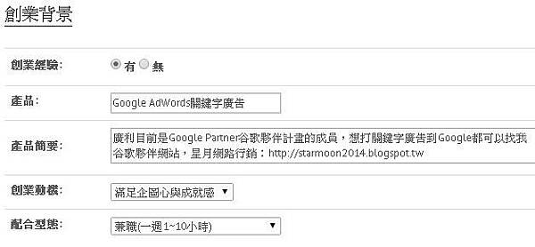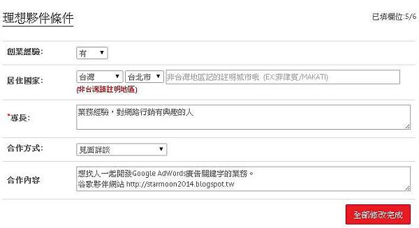 伴專長、合作方式、合作內容的地方,稍微選擇描述一下,按下
