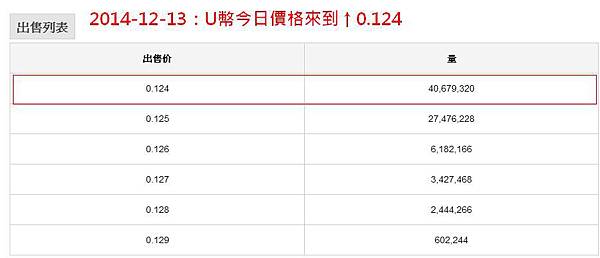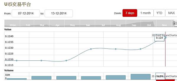 2014-12-13:U幣價位來到0.124美元。