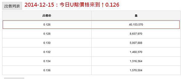 2014-12-15:U幣價位來到0.126美元。