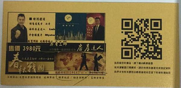 2015-06-27:七哥X帥過頭,犇亞會議中心房地產講座門票。