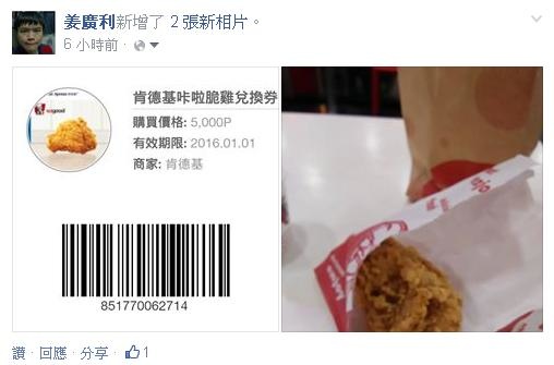 2015-06-24:今天用5000點兌換肯德基雞塊,大家也快块下載HoneyScreen喔!