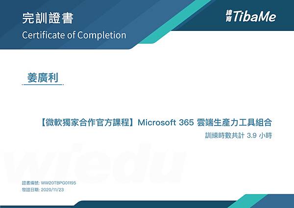 Microsoft 365生產力工具官方研習證書