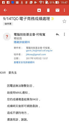 2017-09-14(四):耶,過了。TQC電子商務概論實用級